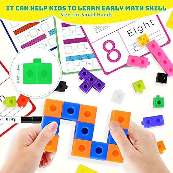 • Math Learning Activities for Kids Ages 4-8: Our connecting cubes are good learning tool to help your child with math. Parent was having trouble getting kids to understand math while going over his homework. This product can help you teach your kids math. The linking cubes helps children age 3, 4, 5, 6, 7, 8, 9+ years old to develop essential fine motor skills as well as skills in math, grouping, patterning and color identification. The best counting toy for kids.