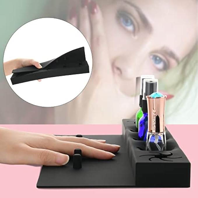 Beautyflier Soft Silicone Nail Polish Bottle Holder, Nail Polish Organizer Nail Station for Salon Home DIY Manicure Tools Nail Art (Black)