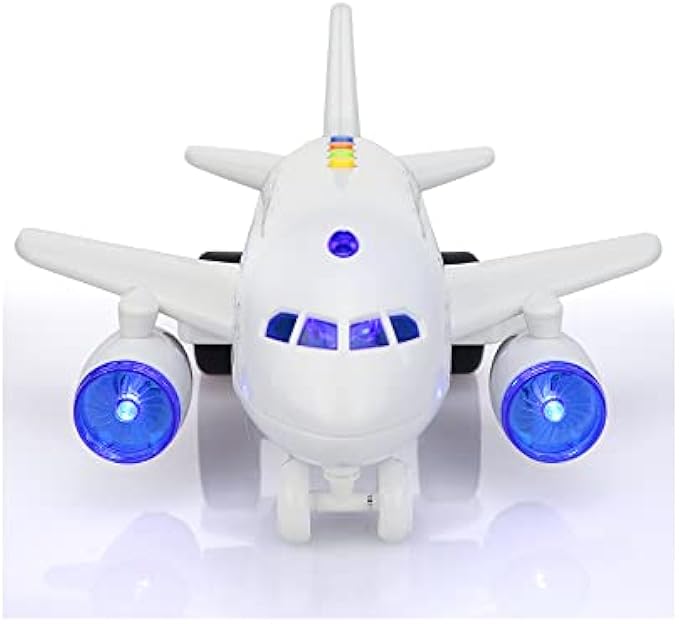 • YOUR FLIGHT MISSION IS READY TO START push one of the buttons to start the engines with flashing lights, push other for flight announcement and for plane realistic sound, push it slightly and it will go forward on its own and go traveling.