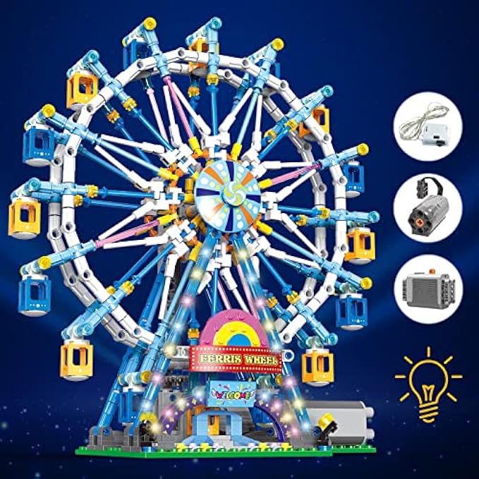 • ?【PERFECT GIFT】: Carnival Ferris Wheel has, cool styling. And he can rotate left and right through the motor, with lighting effects, simulate the real Ferris wheel, suitable for Girls Boys age 8-12+ on Christmas, Birthday, New Years or other festival.Any kid ( or adult) is going to have fun with this one. This toy gift will definitely make them excited.