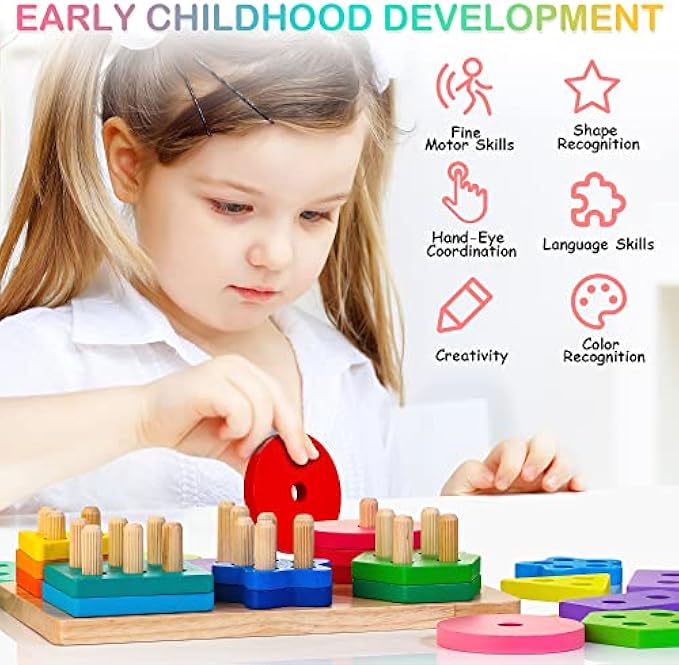 • 【Best Gift Choice】This high quality Montessori wooden toy coming in bright colors, good workmanship and cute packaging, is educational, fun, safe and parent-approved, will put big smiles on cute little faces.