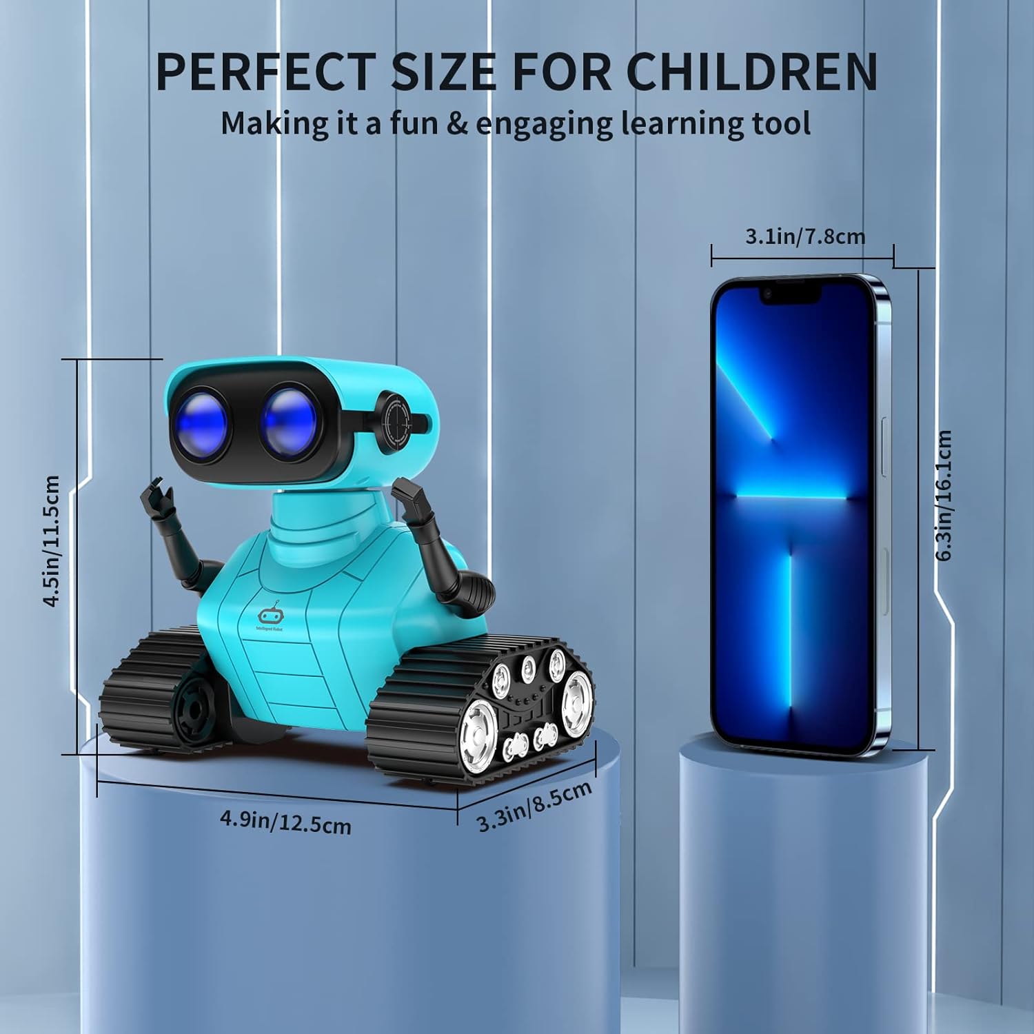 ALLCELE Robot Toys, Rechargeable RC Robots for Kids Boys, Remote Control Toy with Music and LED Eyes, Gift for Children Age 3 Years and Up - Blue