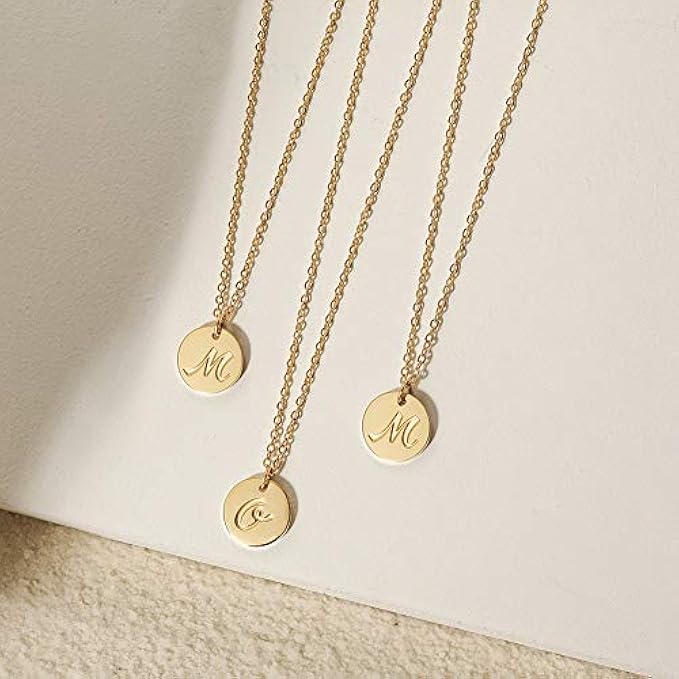 • Initial Necklace: The small round disc charm is stamped with the letter of your choice for a symbolic statement you'll love to admire and wear. Show off your first name, your new last name, children's name.