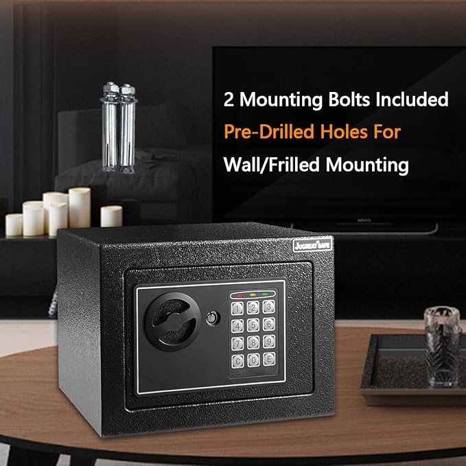 JUGREAT Safe Box with Induction Light,Electronic Digital Security Safe Steel Construction Hidden with Lock,Wall or Cabinet Anchoring Design for Home Office Hotel Business 0.23 Cubic Feet Black