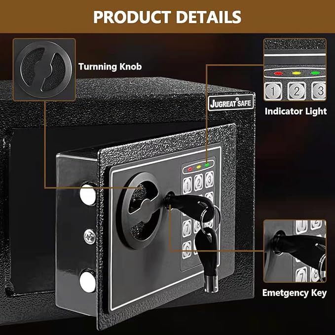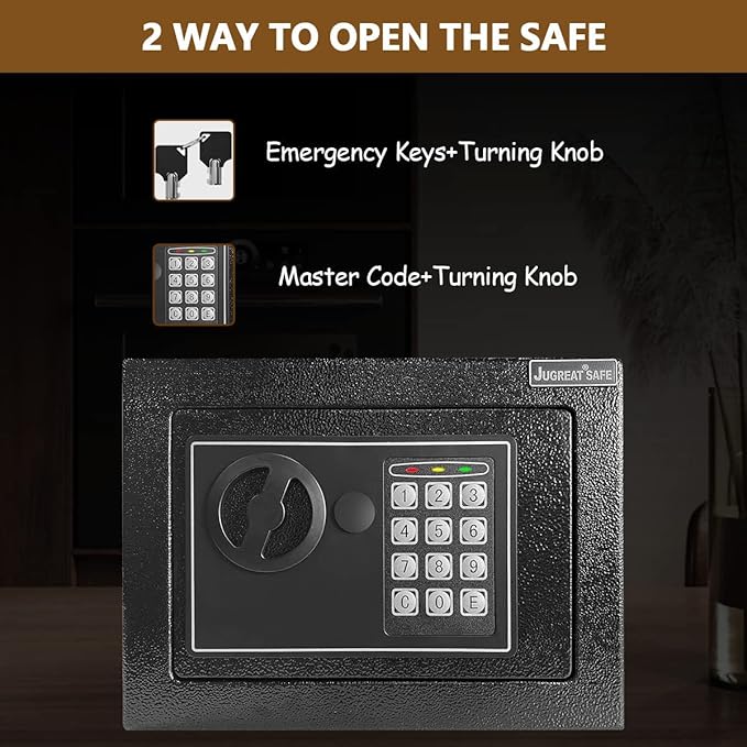 • √Personalized Keypad Access - You can program two own personal access code used the digital access pad. The safe with automatic lock and automatic warning function, when 3 continuously wrong entries will activate the warming beep for 20 seconds and 3 continuously wrong entries again will activate the warming beep for 300 seconds.