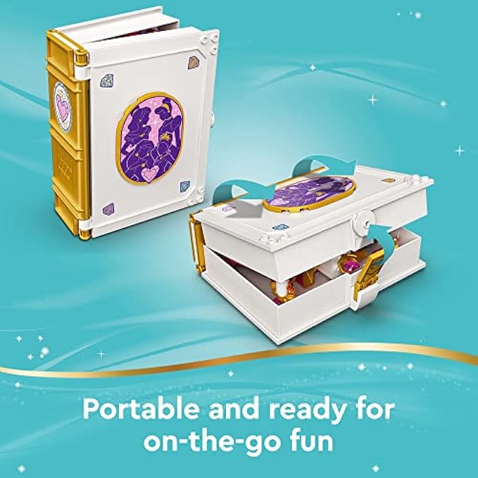 • Kick-start creative role play or play out favorite movie scenes with this LEGO Disney Ariel, Belle, Cinderella and Tiana’s Storybook Adventures (43193) set. Play starts with opening the book