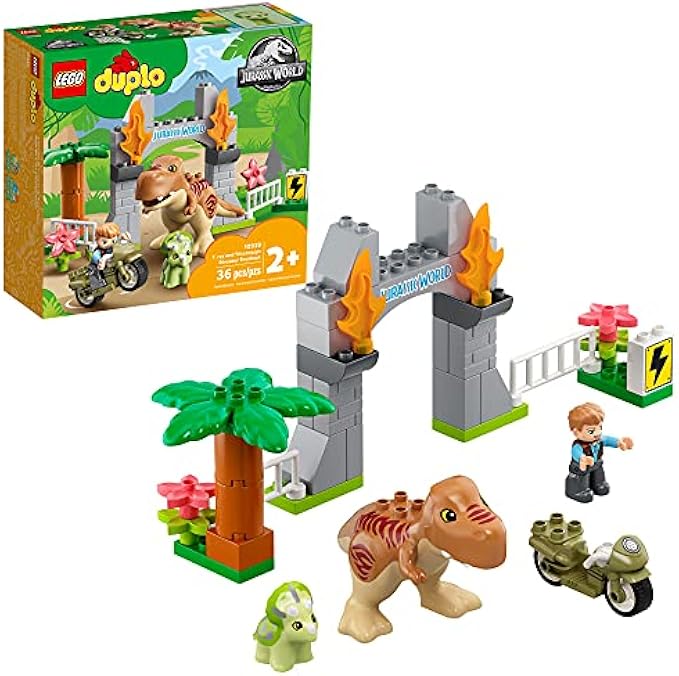 • LEGO DUPLO Jurassic World T. rex and Triceratops Dinosaur Breakout (10939) is an exciting and engaging toy providing dinosaur-loving preschoolers with hands-on action and developmental fun