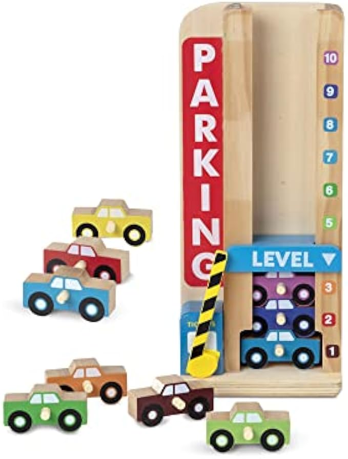 Melissa & Doug Stack & Count Wooden Parking Garage With 10 Cars