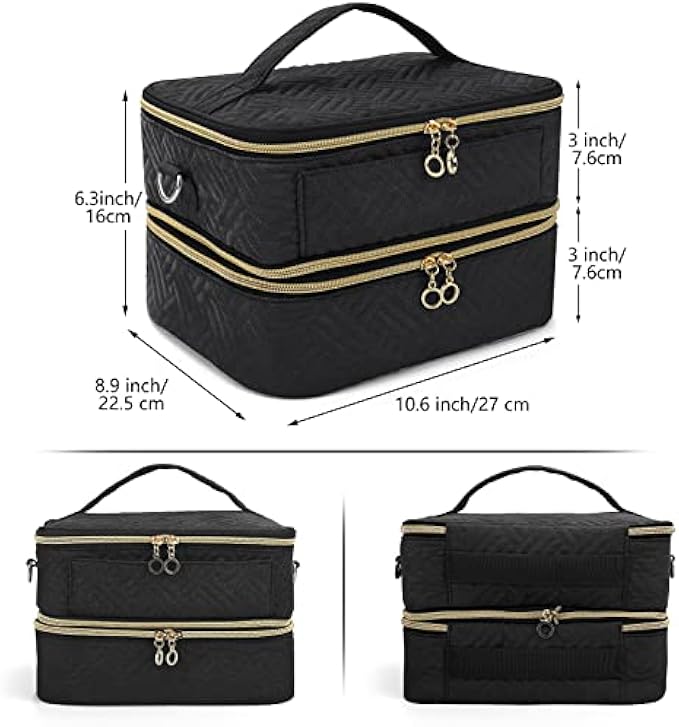 Nail Polish Carrying Bag, Double Layer Nail Polish Storage Organizer Case, Holds 42 Bottles Nail Polish Holder Organizer Travel Box for Nail Dryer, Nail Drill and Manicure Accessories (Black)