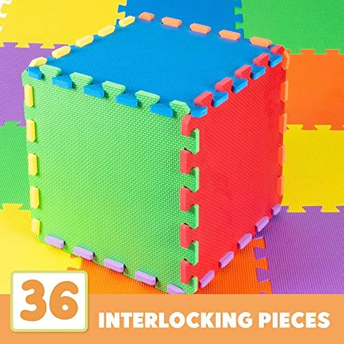 Non-Toxic Extra-Thick 36 Piece Children Play & Exercise Mat - Comfortable Cushiony Foam Floor Puzzle Mat, 6 Vibrant Colors for Kids & Toddlers