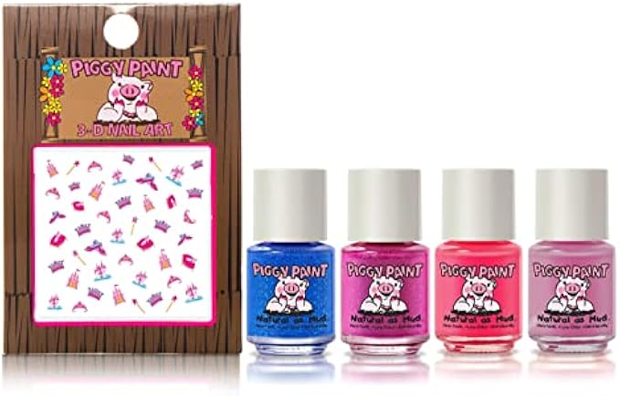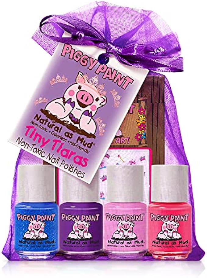 Piggy Paint 100% Non-toxic Girls Nail Polish - Safe, Chemical Free Low Odor for Kids, Tiny Tiaras Gift Set