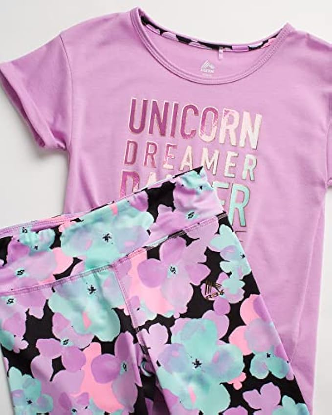 RBX Girls’ Active Set – Performance Short Sleeve T-Shirt, Capri Yoga Pants Leggings Set (2 Pack)