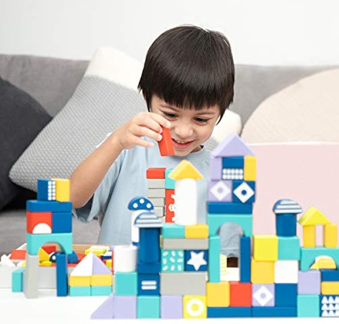 • [ Safe and Nontoxic ] - Robud Wooden Building Blocks with water as the solvent, the toddlers can also rest assured that the use of safe and non-toxic green water-based paint on the building blocks wood. It is not harmful even kids bite.