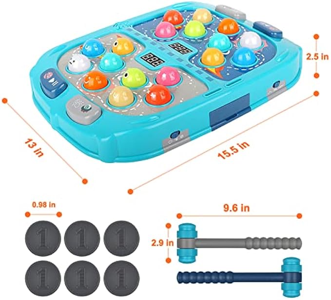 • ?【The Best Gift for Kids】1 × Whack Game Toy, 2 × Hammers Toy, 6 × coins. Keep kids away from cell phones, computers, and find the purest child fun. Hammer toys are sturdy enough to withstand a child's strong and constant pounding. It is the best gift for birthday, new year, christmas, children's day. Perfect for home, classroom, family activities, travel time!