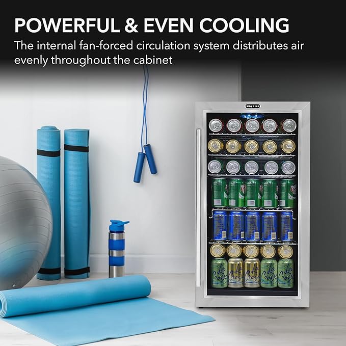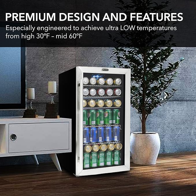 • Beverage Fridge: Unlike many budget beverage refrigerators, our drink fridge utilizes premium features like a powerful compressor and internal air-cooling system to create an evenly-cooled space