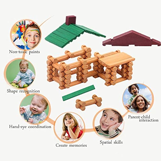 • EDUCATIONAL TOY: Follow the step-by-step instructions to build the wooden logs, Solid wood activity center offers hours and hours of exploratory fun and learning, they can construct a variety of cabins that allow kids to experience the fun of construction