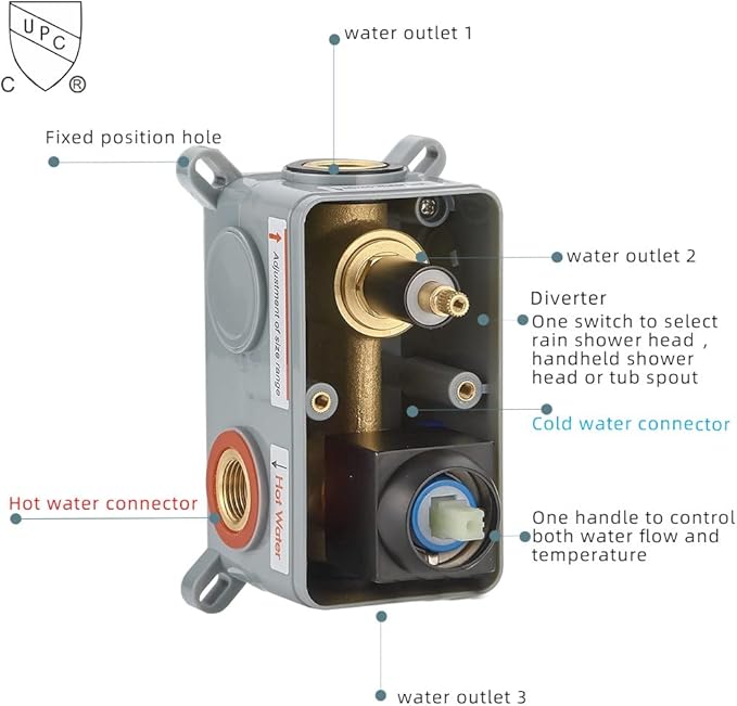 [Pressure Balance Valve] The shower valve contains an adjustable water pressure device that rebalances the water pressure, prevents the shower from overheating, and helps protect you from scalding