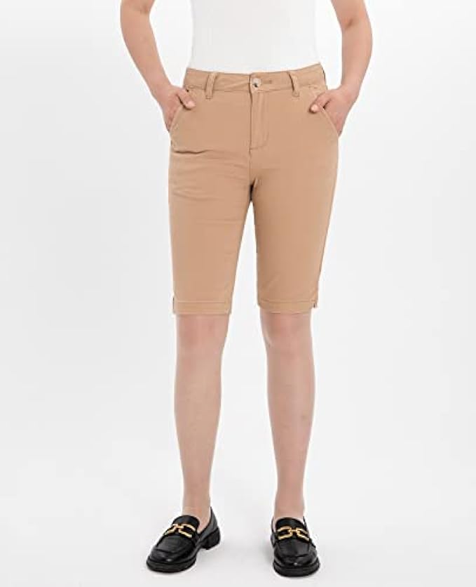 • GO-TO SUMMER WEAR: Womens Bermuda Chino Shorts,made from 98% Cotton, 2% Spandex,Pre-washed for comfy fit.These summer shorts for women can be dressed up or dress down based on your lifestyle